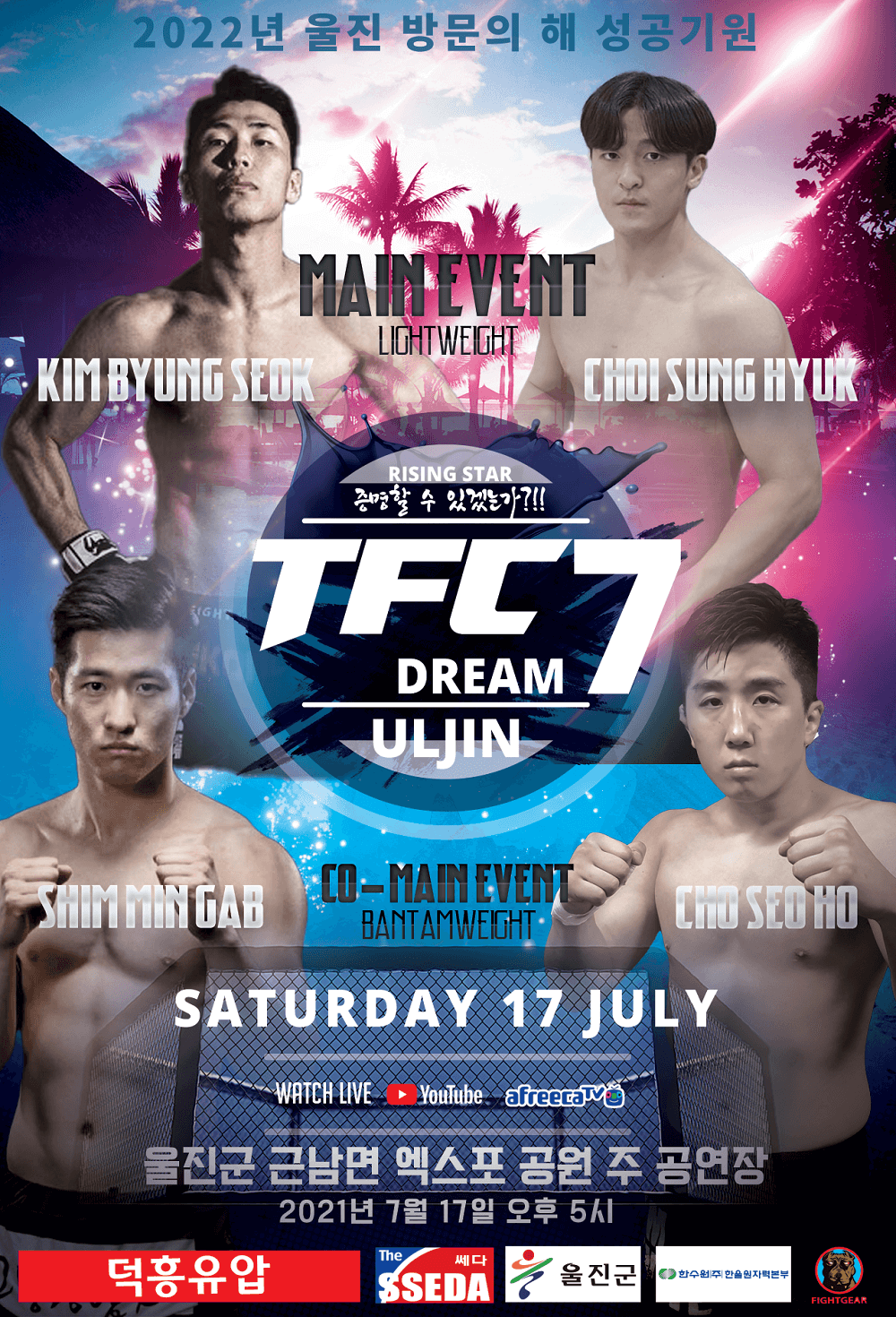 TFC 드림 7 울진, 대회가 2021년 7월 17일 경복 울진군 근남면 엑스포 공원 주 공연장(오후 5시 시작)에서 열린다.