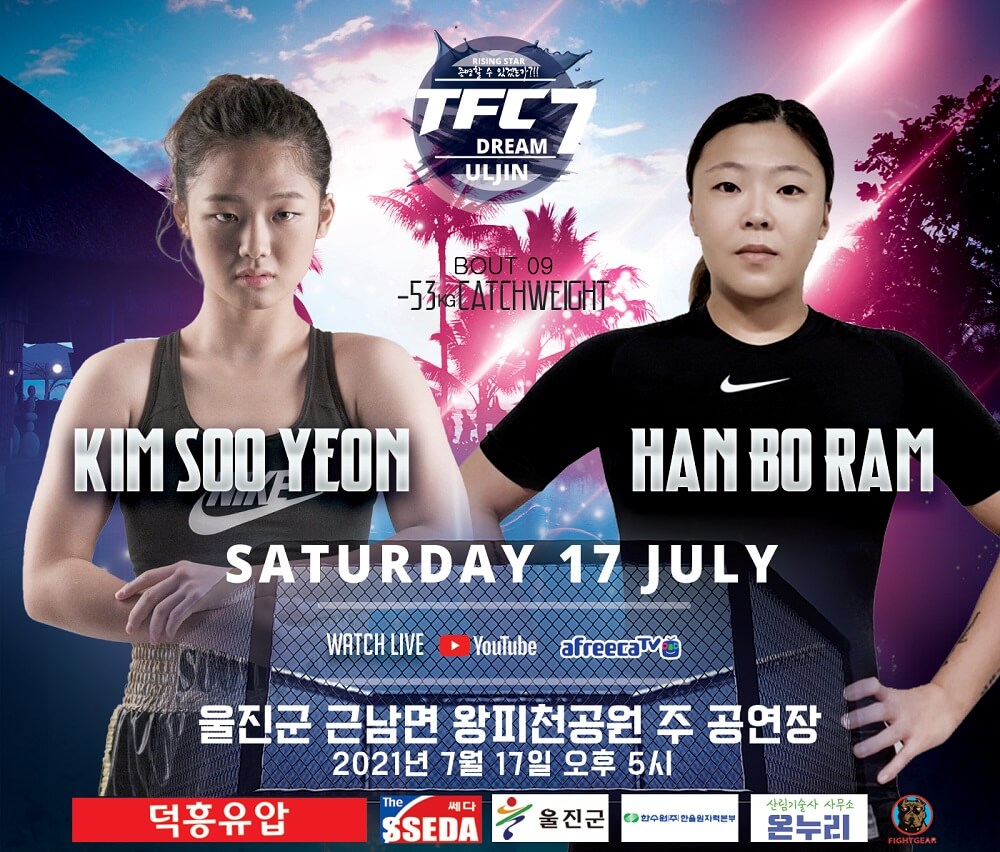 TFC는 "킥복서 출신의 김수연이 경북 울진에서 열리는 'TFC 드림 7에서 데뷔전을 치른다. 상대는 신성 한보람(31, 제주 피너클MMA)으로, 둘의 대결은 -53kg 계약체중매치로 진행된다"고 공식 발표했다.