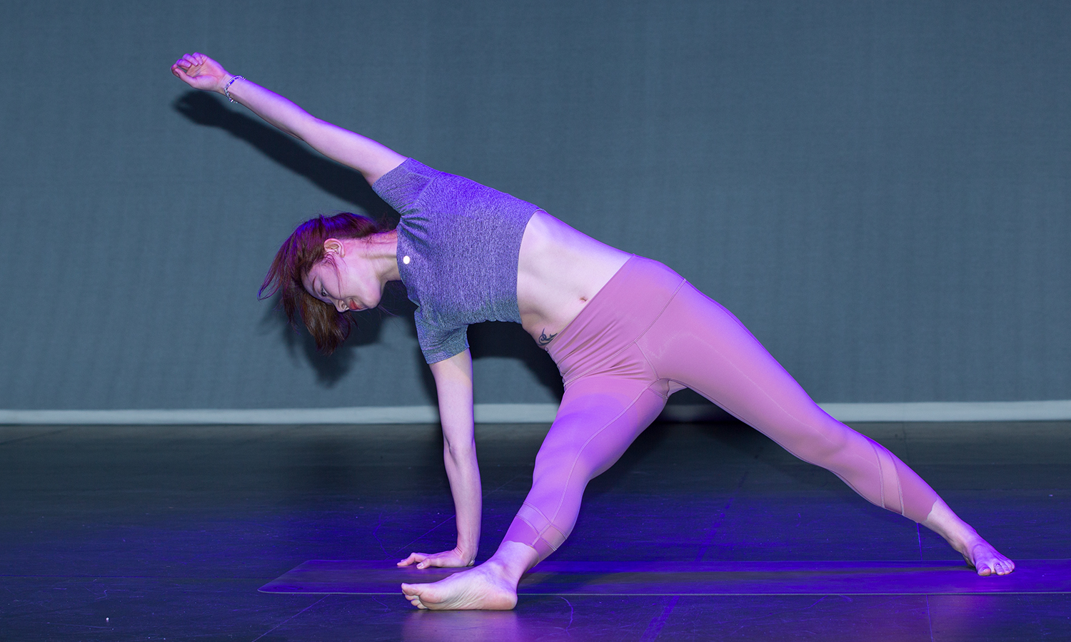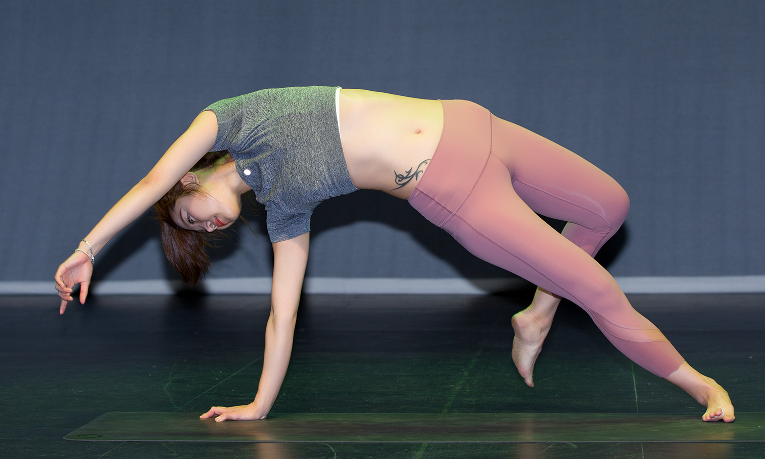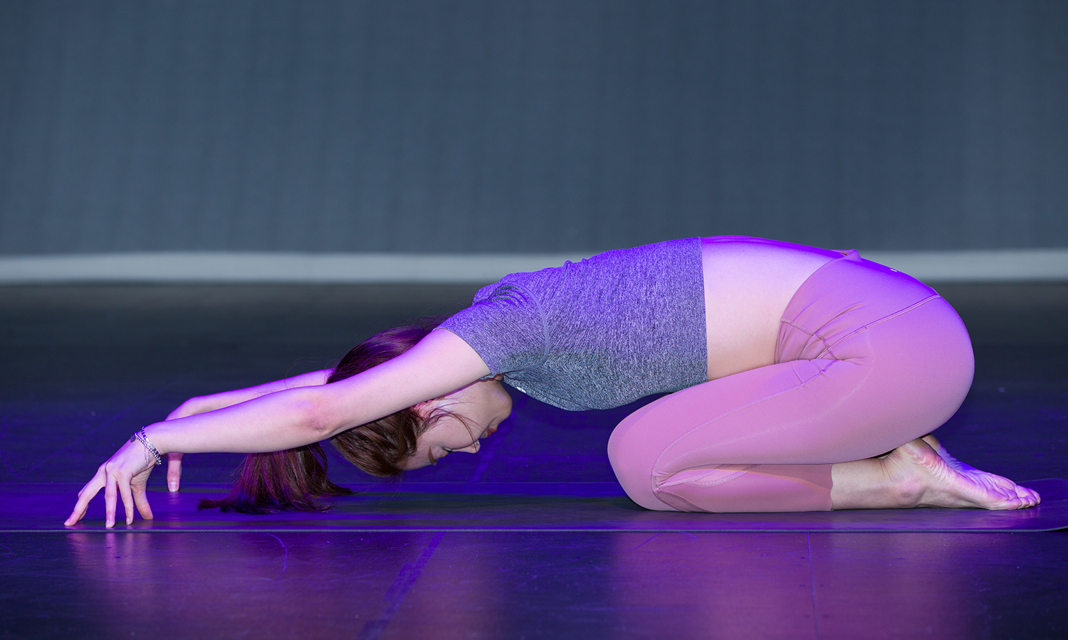 2번 차가로 출전한 맹은주 (유튜브 요가채널 '반디요가' 운영)가 무대에서 아름다운 요가 동작을 선보고 있다.