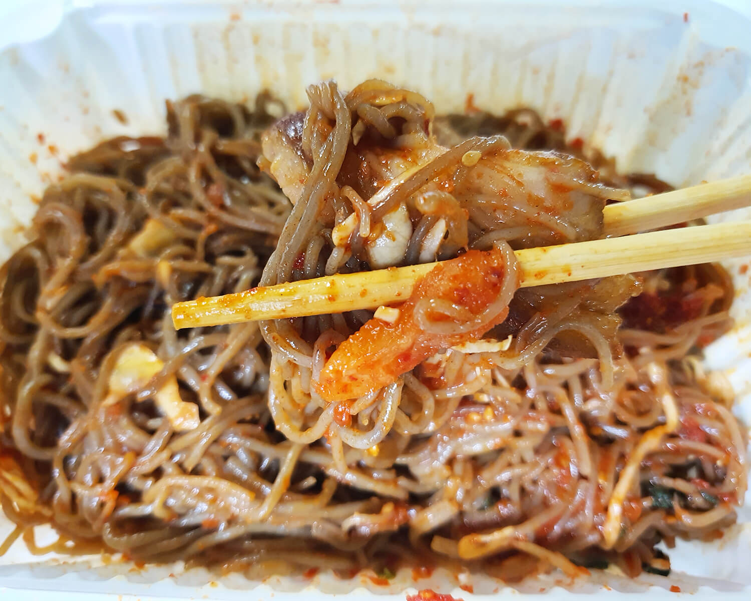 마찬가지로 막국수에 족발을 올려 먹으면