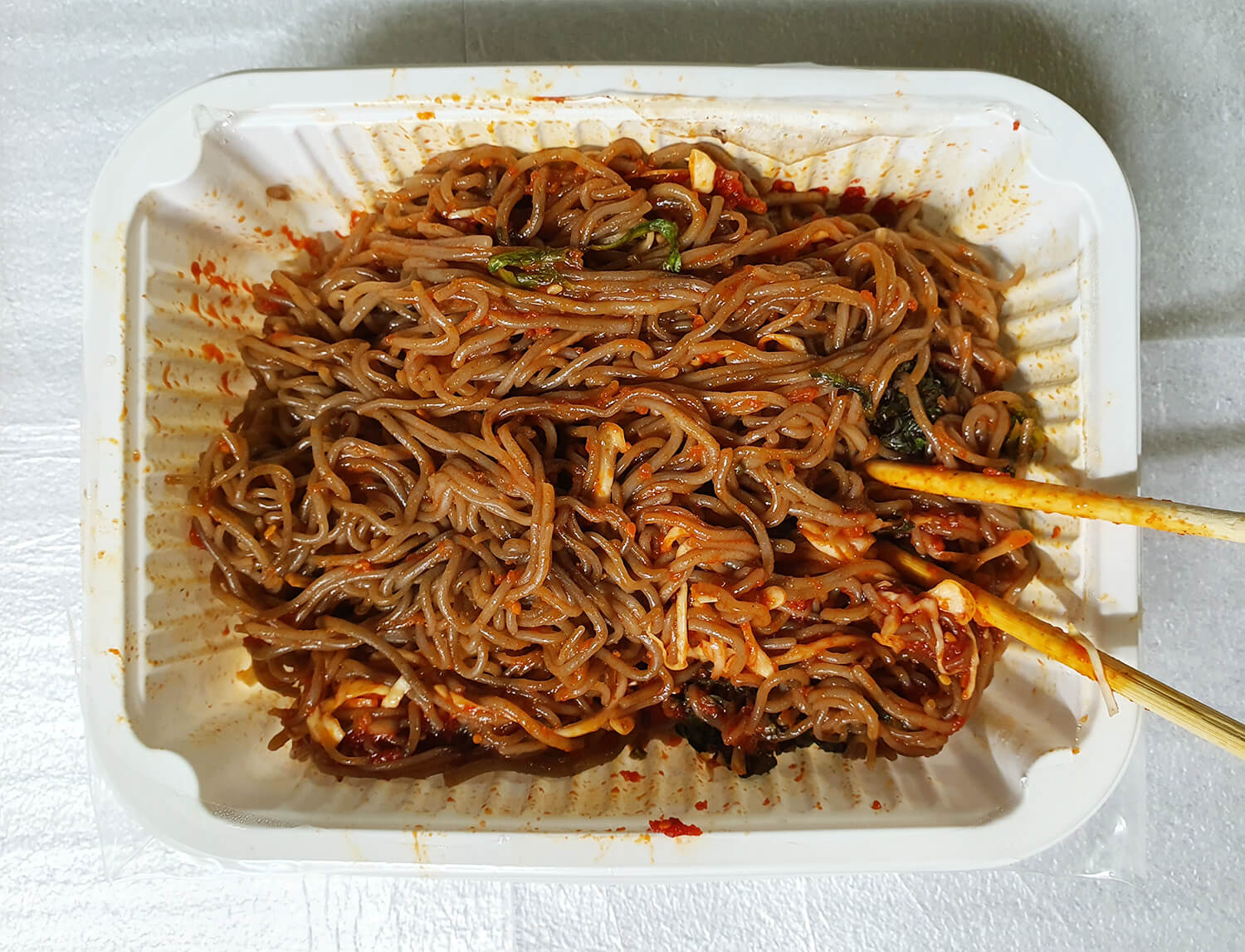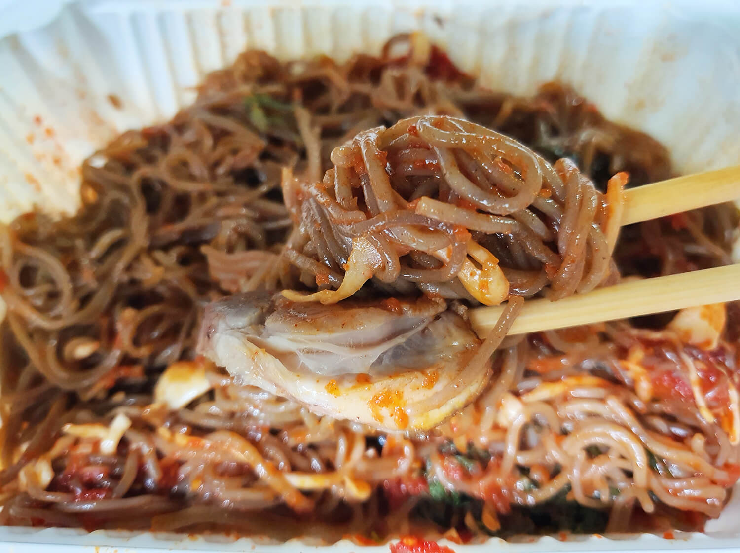 족발을 어느 정도 먹은 후 막국수를 양념을