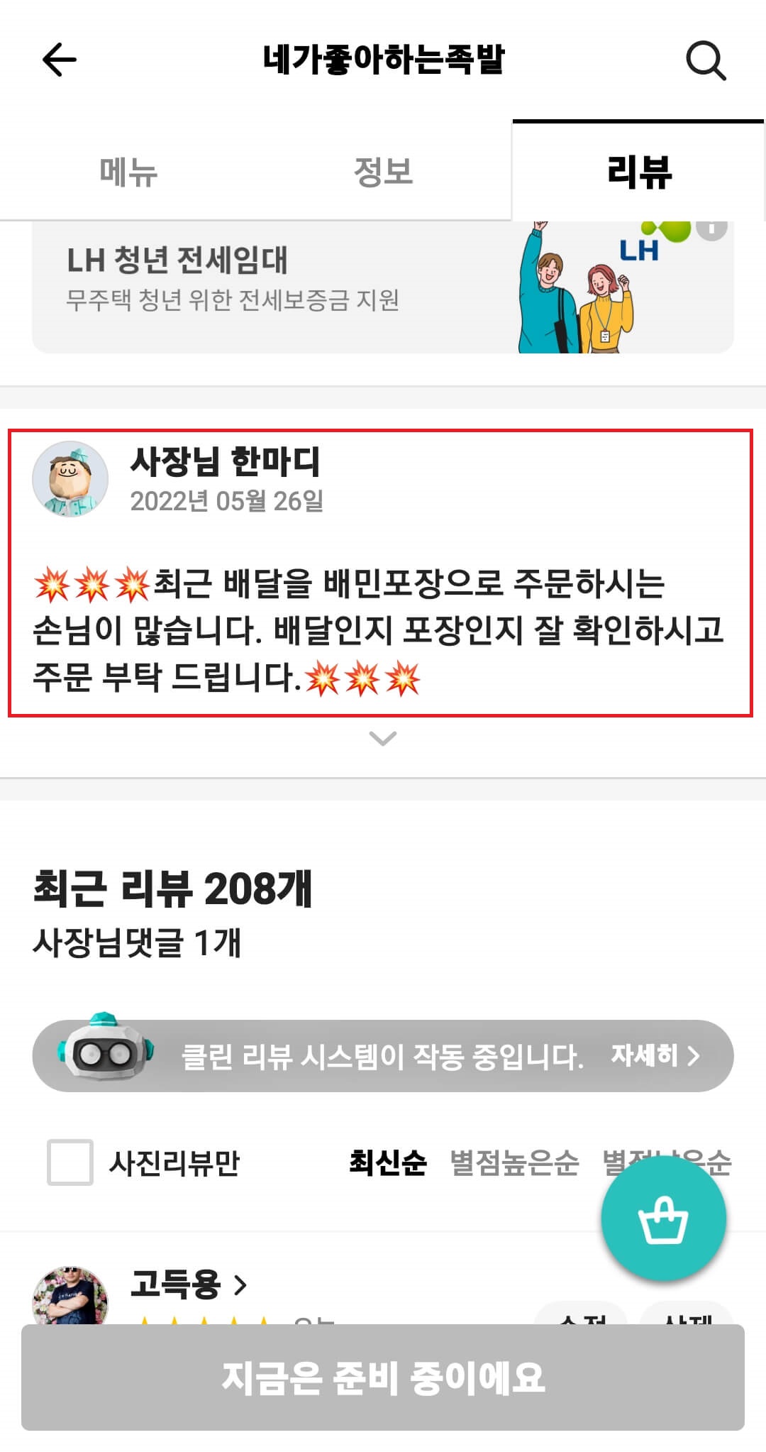 족발 포장이 다 끝났는데 왜 찾으러 안 오시냐고~ㅠㅠㅠ