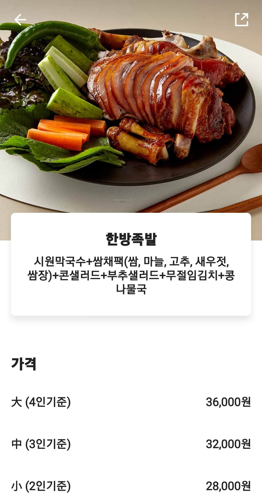 저는 네가좋아하는족발 메뉴 중 한방족발 中(3인분 기준) 32,000원짜리