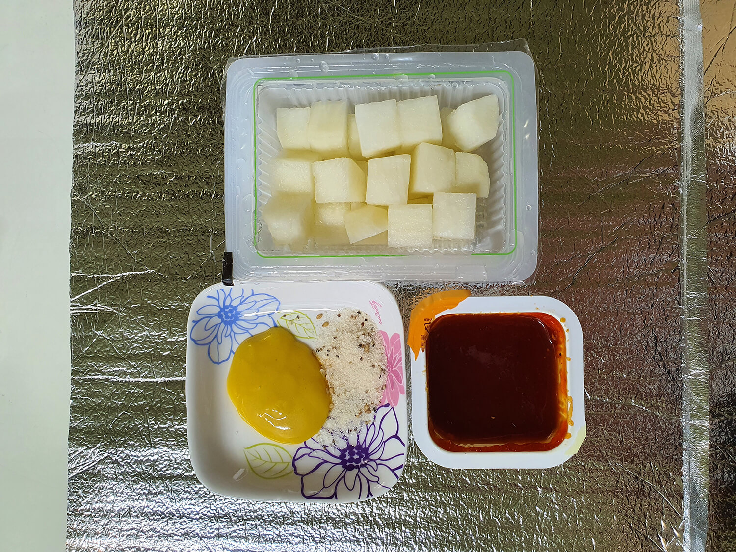 양념소금에 찍어 먹고 치킨 소스에 찍어 먹고