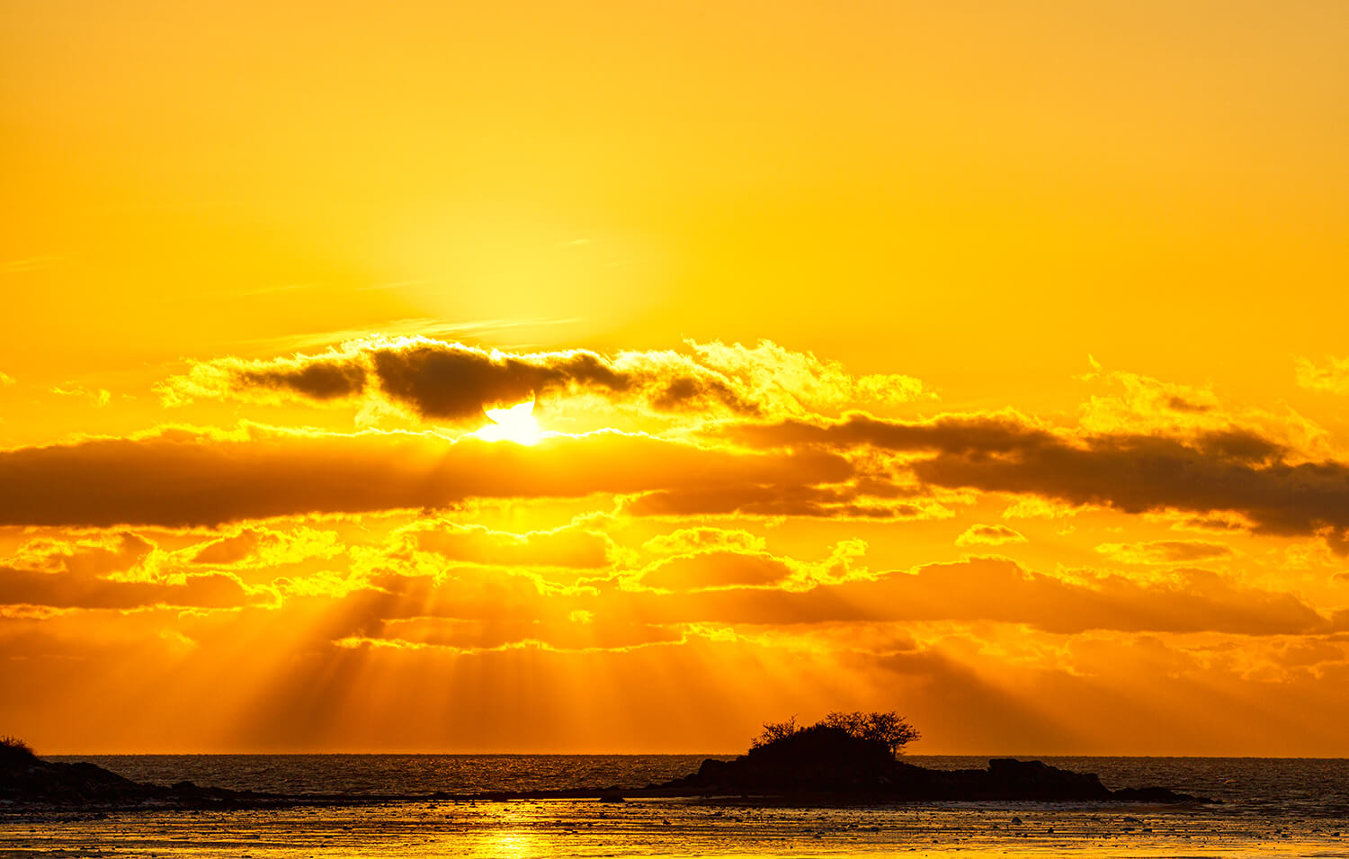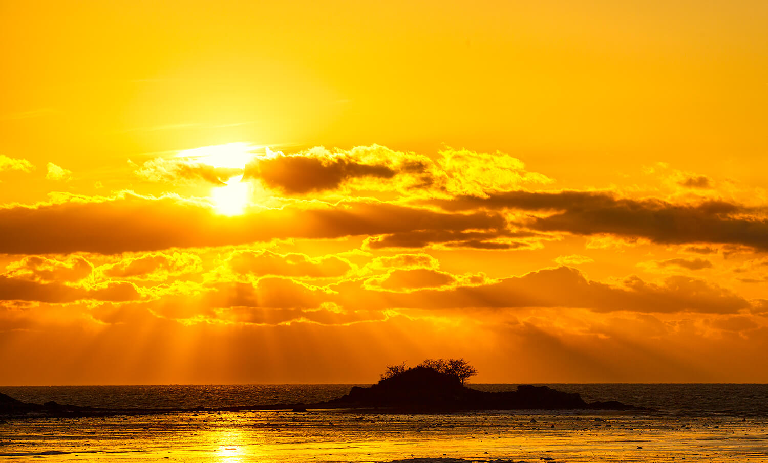 저 멀리 보이는 섬 가운데로 해가 떨어지는 장면입니다.