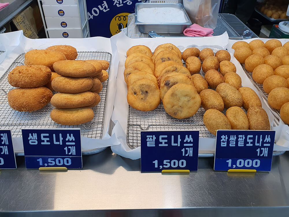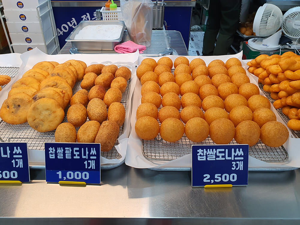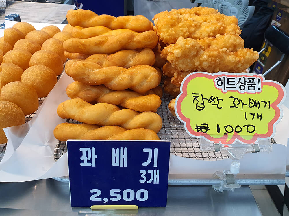 저는 간식거리로 히트 상품인 찹쌀꽈배기와 팥도나쓰를 샀어요.