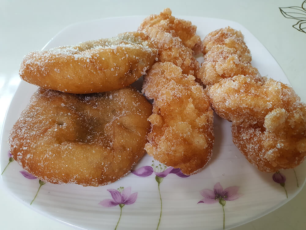한참을 시장에서 여기저기 돌아다니다 집에 와서 마마도나쓰에서 사 온 찹쌀꽈배기와 팥도나쓰를 먹어 보았어요.