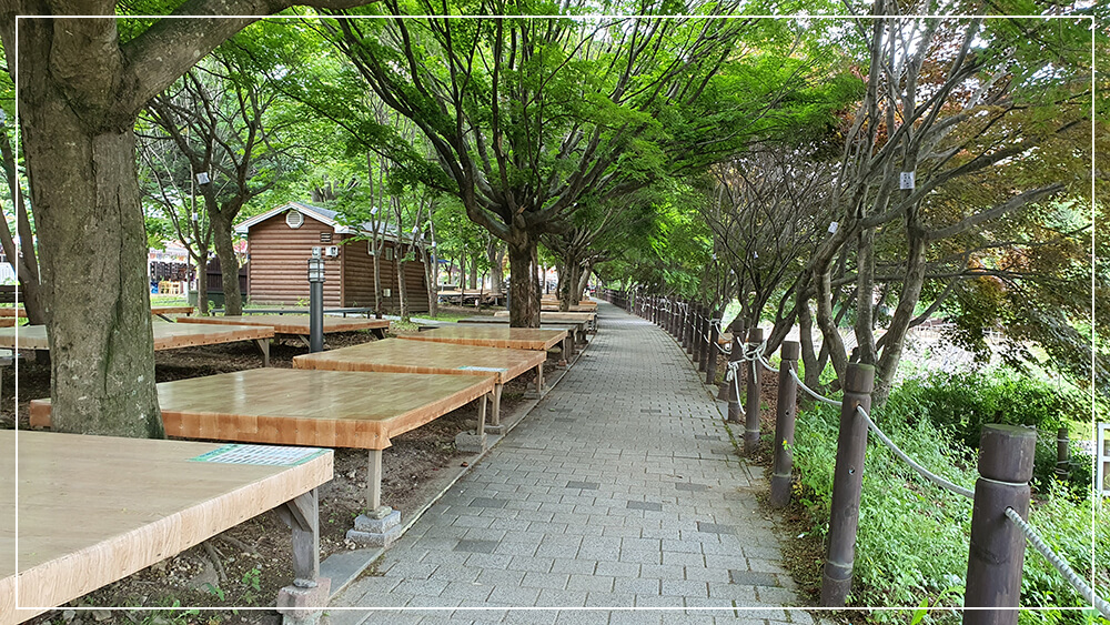 펜션 건너편에 다양한 음식점과 편의점 식재료 가게가 있어 부족한 식재료를 구매하거나 하루 한 끼 정도는 주변 식당에서 해결하는 것도 좋을듯합니다. 이제 곳 성수기에 접어들면 저 여유로운 평상도 손님들로 북적대겠죠!