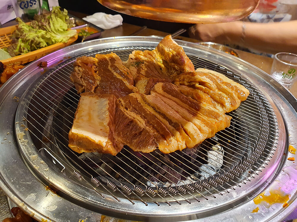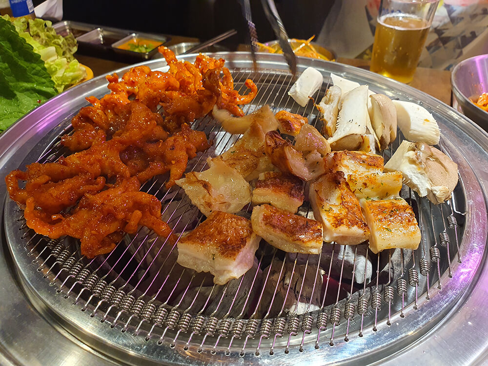 불닭발은 먼저 삶아 매콤한 양념에 무쳐 나온 것을 석쇠에 올려 구워 먹으니 불 맛도 나고 졸긴 한 식감과 함께 정말 맛나더라고요.